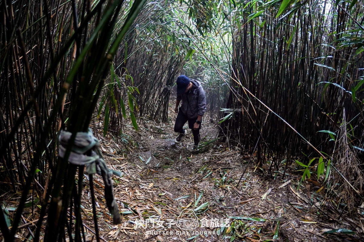 竹林太過茂密、太過狼狽,我連相機都不想拿起來,直接拿手機拍一下眼前的狀態,就是一直被竹林打臉打臉又打臉
