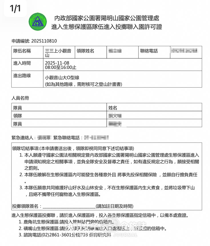 這邊也順便貼上陽明山國家公園-鹿角坑生態園區的申請網址,詳情路線、申請規範請詳閱網站說明