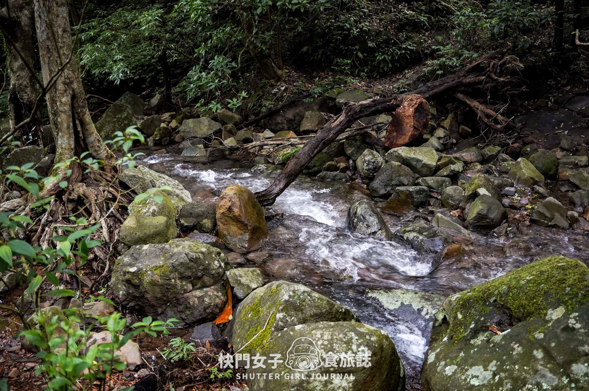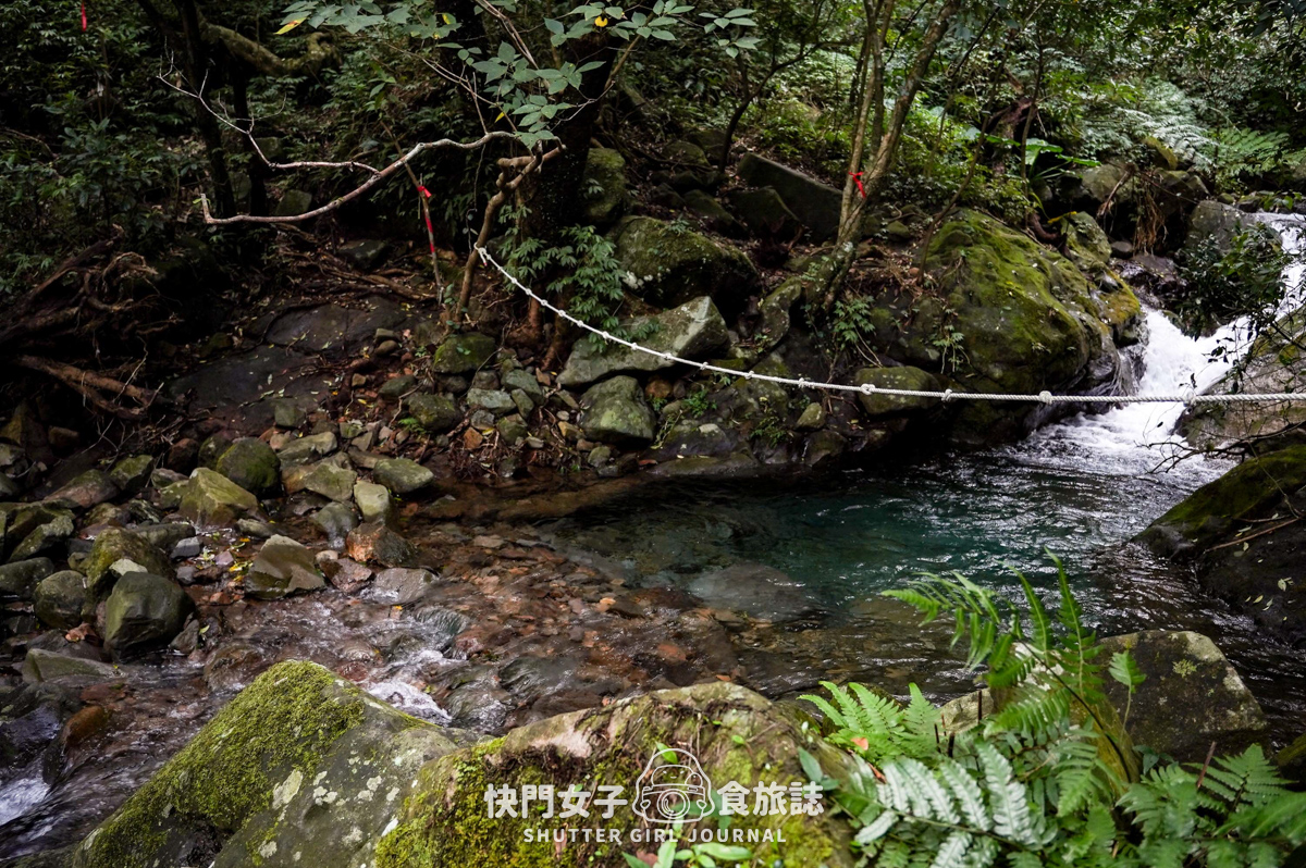 還好溪水並不深、也不湍急,抓繩子或是登山杖支撐都可以好好的安全過溪