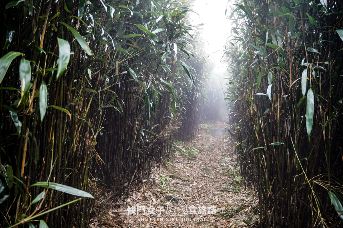 回頭一看,我們剛剛可是從後面的頂端直接下切下來的噢,竹林茂密成這樣,陽光照不到裡面所以道路都會是溼滑的