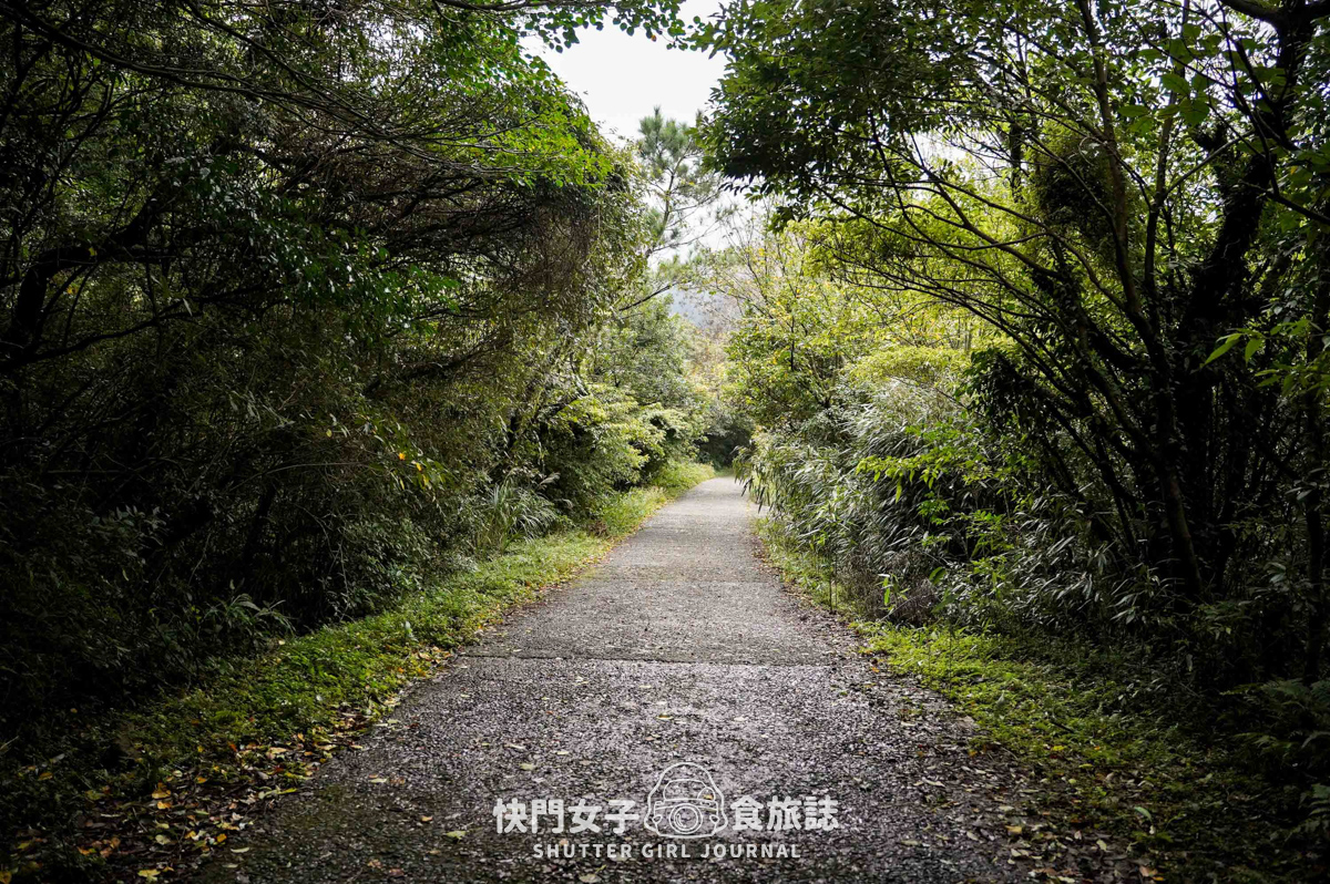上攀到一個高度後,步道趨近平緩,道路也比較寬一點,兩邊都是防風竹林