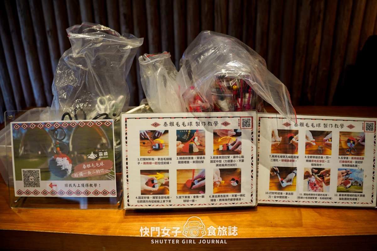 這次的手作品是泰雅族風格的毛毛球,可以當作鑰匙圈;製作的方式是直接掃QRcode,看影片教學就可以做了,算是相當相當簡單