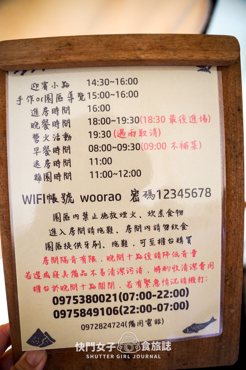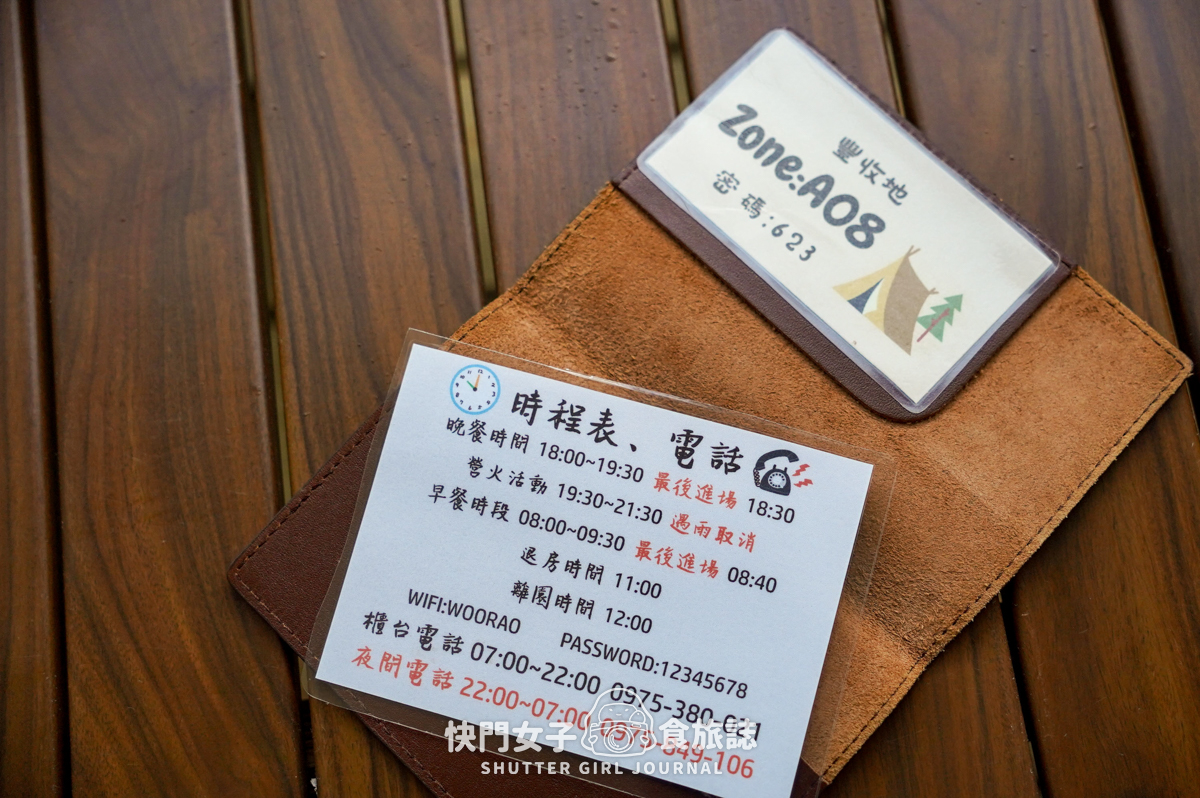 每個帳篷內都有時程表以及入住的一些相關規定,園區也都有提供wifi