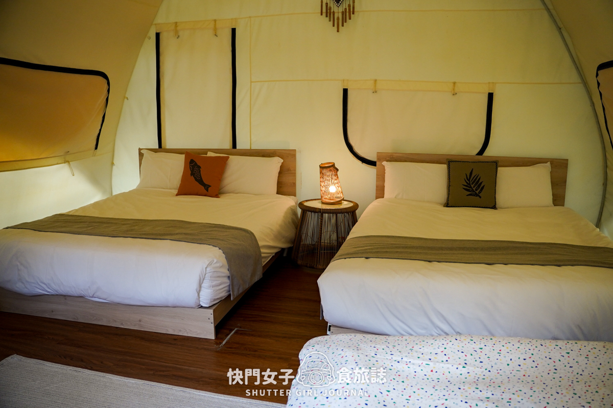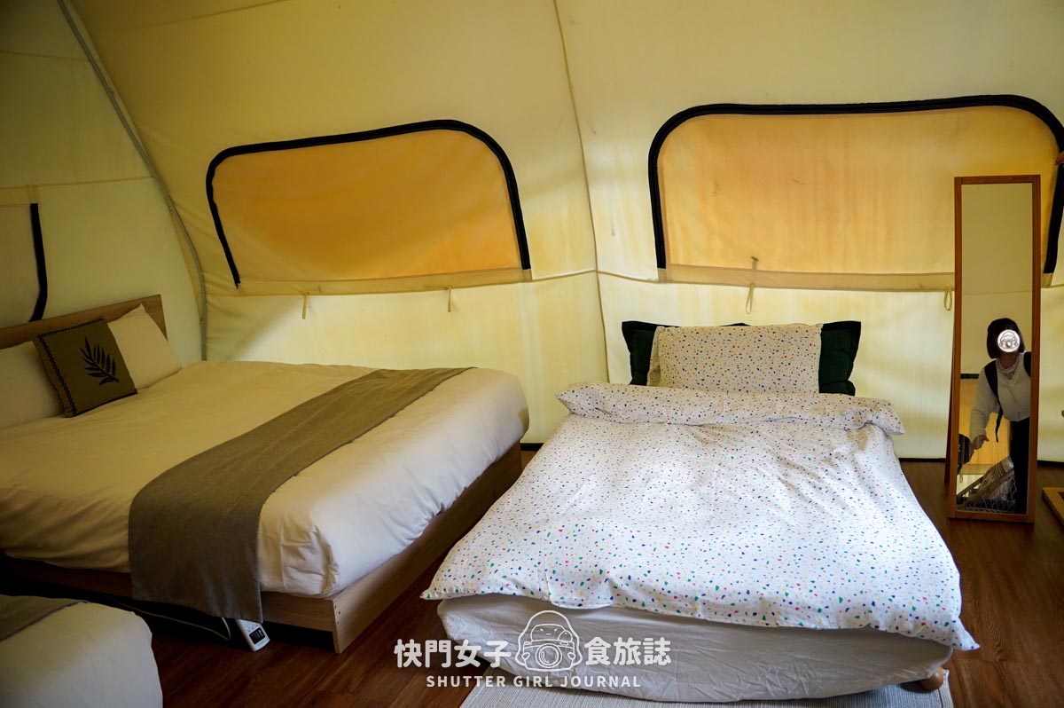 對於帳篷的印象,就是爬山很累最後要睡的冷冷帳篷,很難想像可以在帳篷裡面看到雙人床🤣
