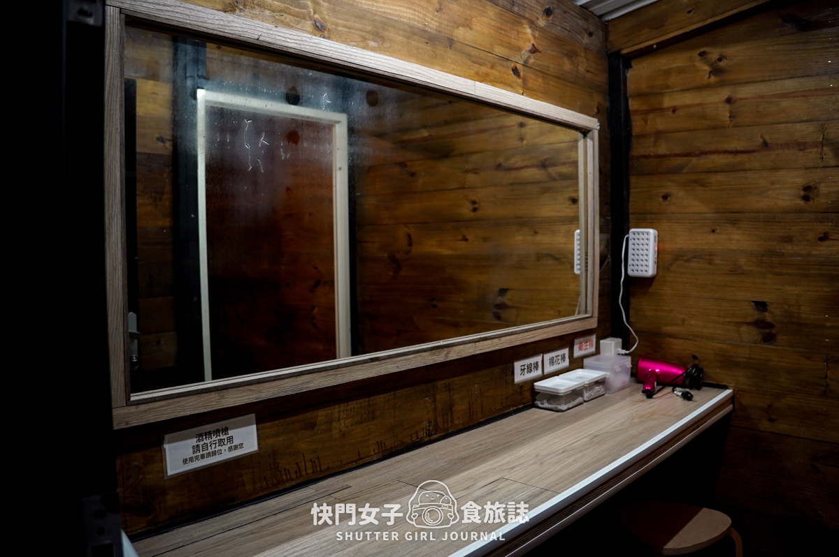 旁邊的空間是吹頭髮、鏡子區,還有提供棉花棒、牙線棒算是很貼心