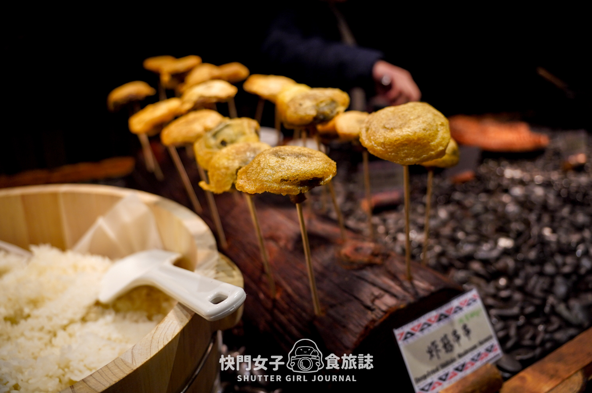 炸香菇因為外表非常可愛,還用竹籤一支一支插著,也算是熱門品項,我拍完照沒多久就被拿光光啦(但廚房很快就補上了