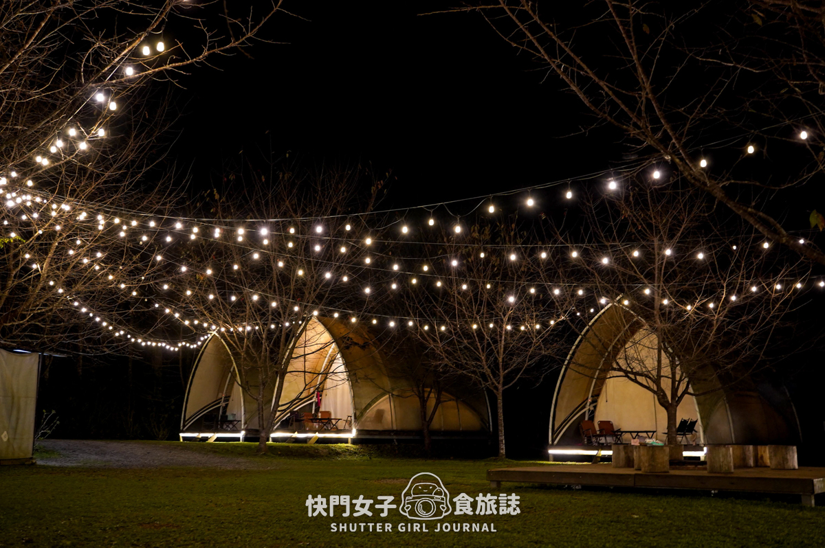 所有帳篷的燈光都亮起來,樹林間的小燈泡也都點亮,真的是很漂亮很漂亮噢!