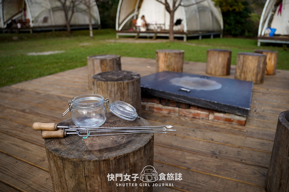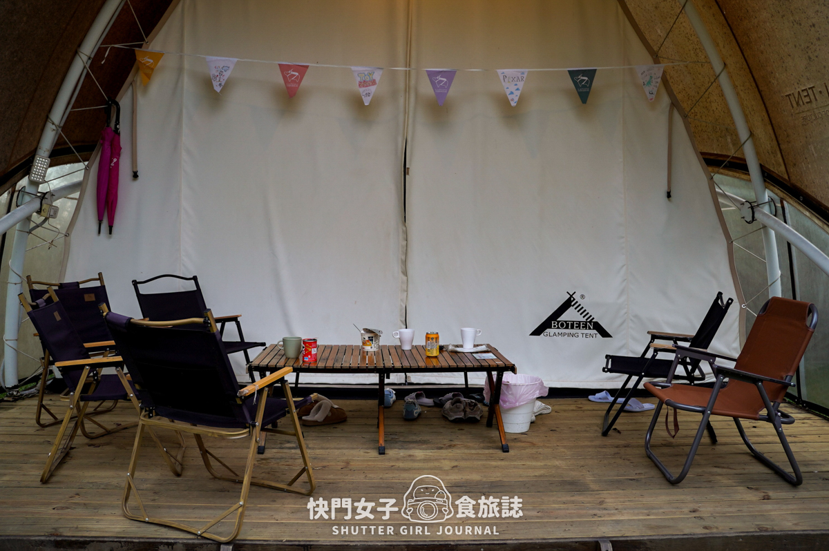每一個帳篷都有附上一些椅子,晚上可以在帳篷外吃東西,也可以拉椅子到營火附近聊天
