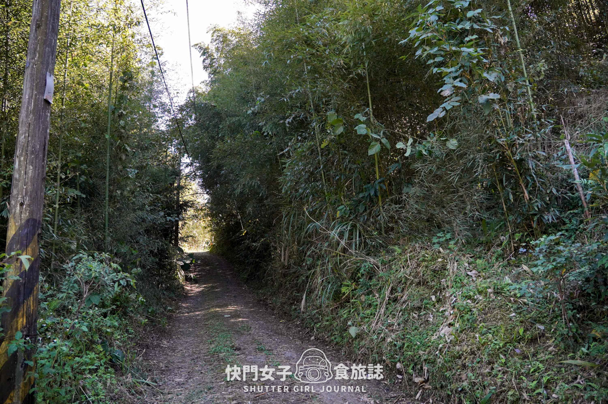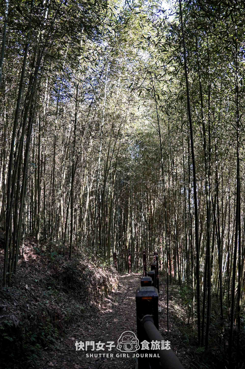 風景和剛剛的水泥路截然不同,兩側都是高聳的竹林,基本上整段路都曬不到太陽,是滿舒適的溫度