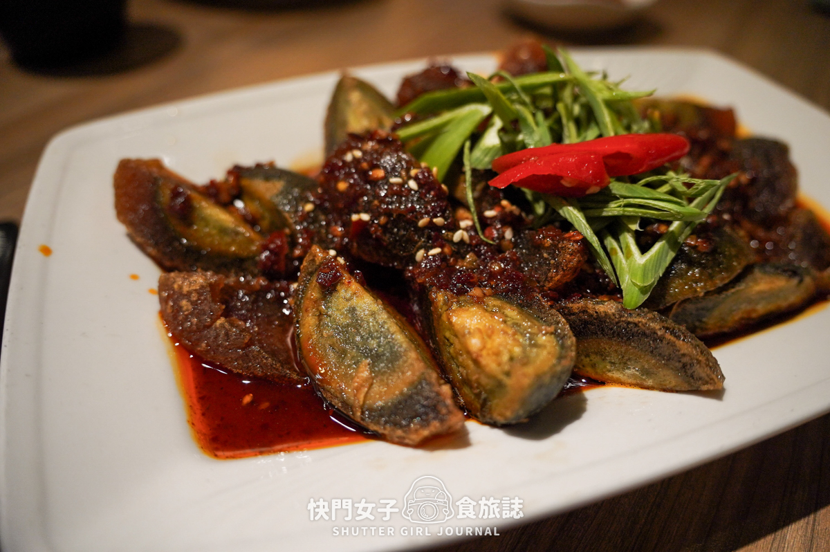 皮蛋上面的醬汁看起來超辣,如果跟我一樣是辣度小弱雞的話可以盡量夾醬汁少一點的皮蛋