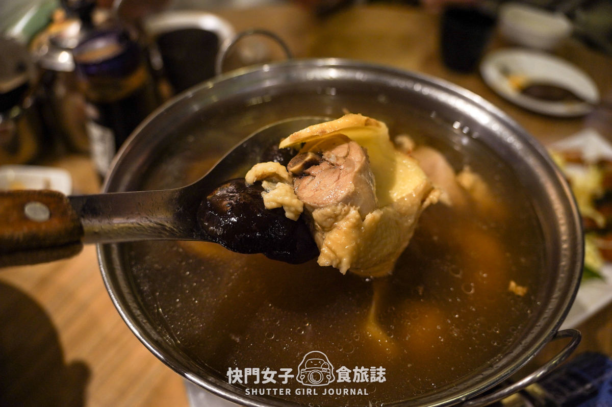 除了香菇以外還有薑片,在山上喝一碗熱雞湯是很不錯的噢