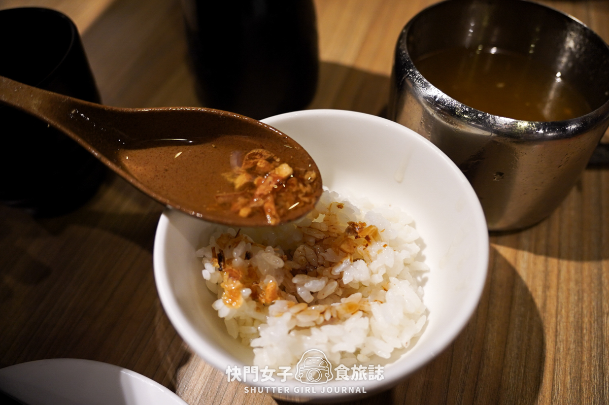 而雞油是另外裝在一個容器,雞油真的是很香很好吃噢!原本大家只是普通餓,但是雞油拌飯真的是超好吃的,我們似乎還續了兩桶飯😌