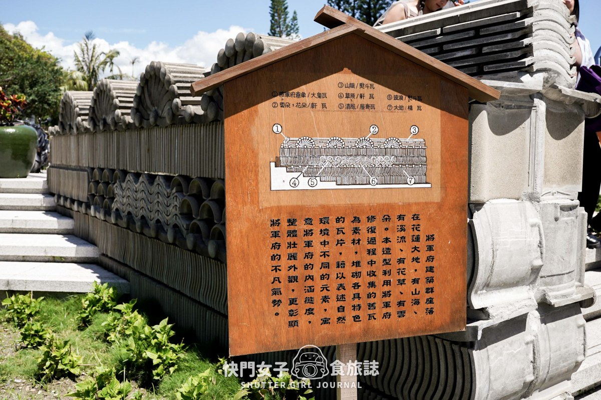 一開始的入口牆就可以看到花蓮將軍府的logo,我很喜歡這個logo設計,非常有表達出該建築的意象