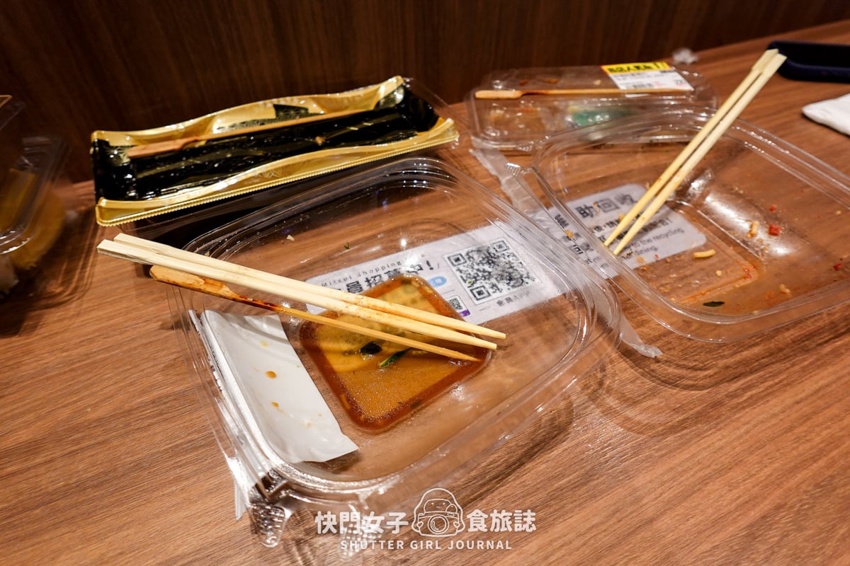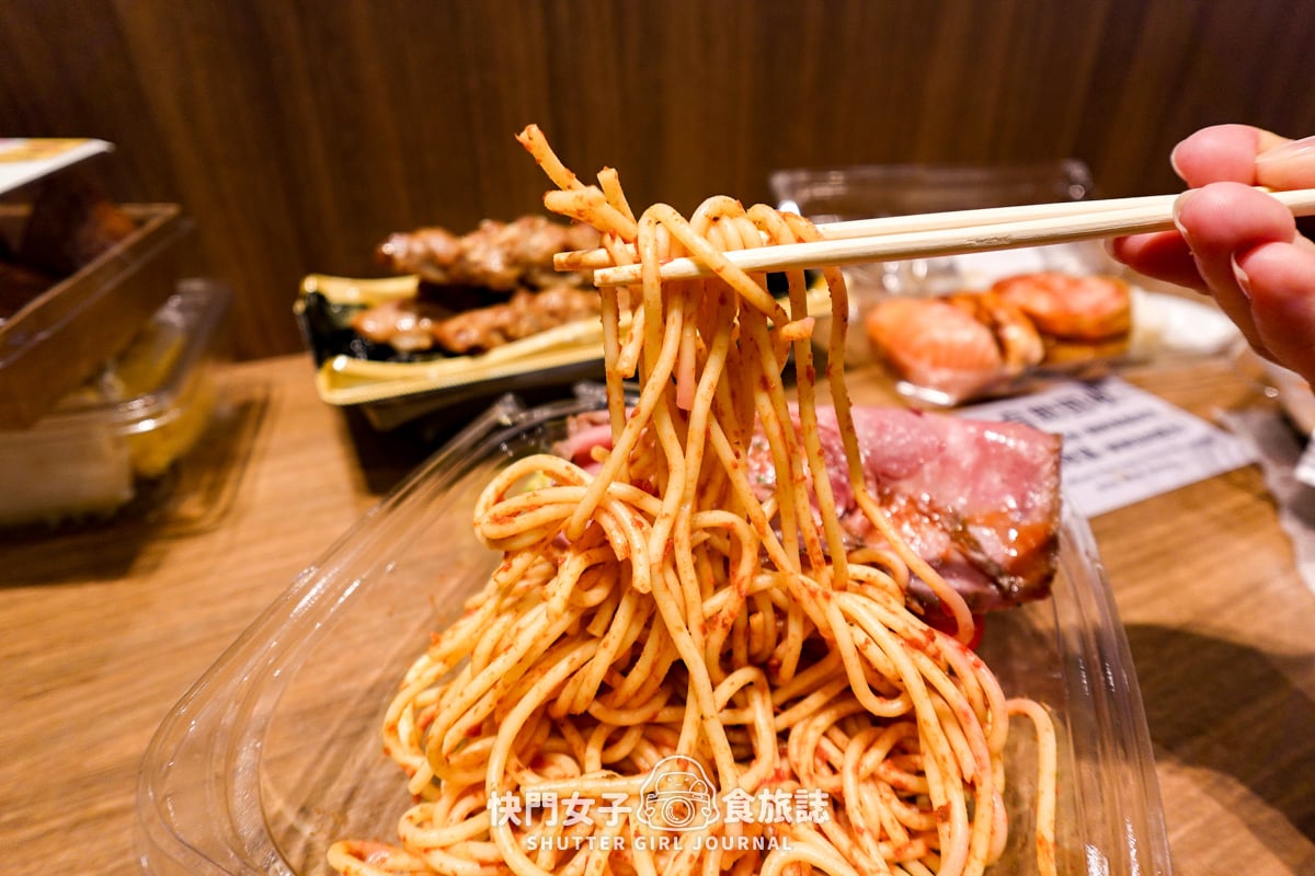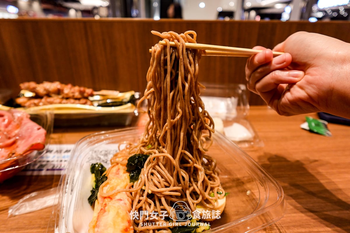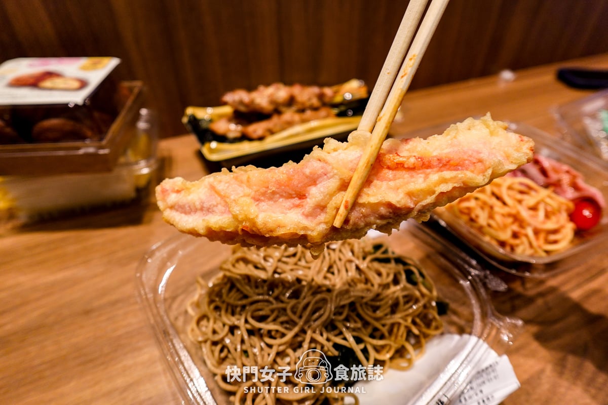 這次我們買了烤牛肉義大利麵、蟹味棒蕎麥麵、現做壽司、烤雞肉串