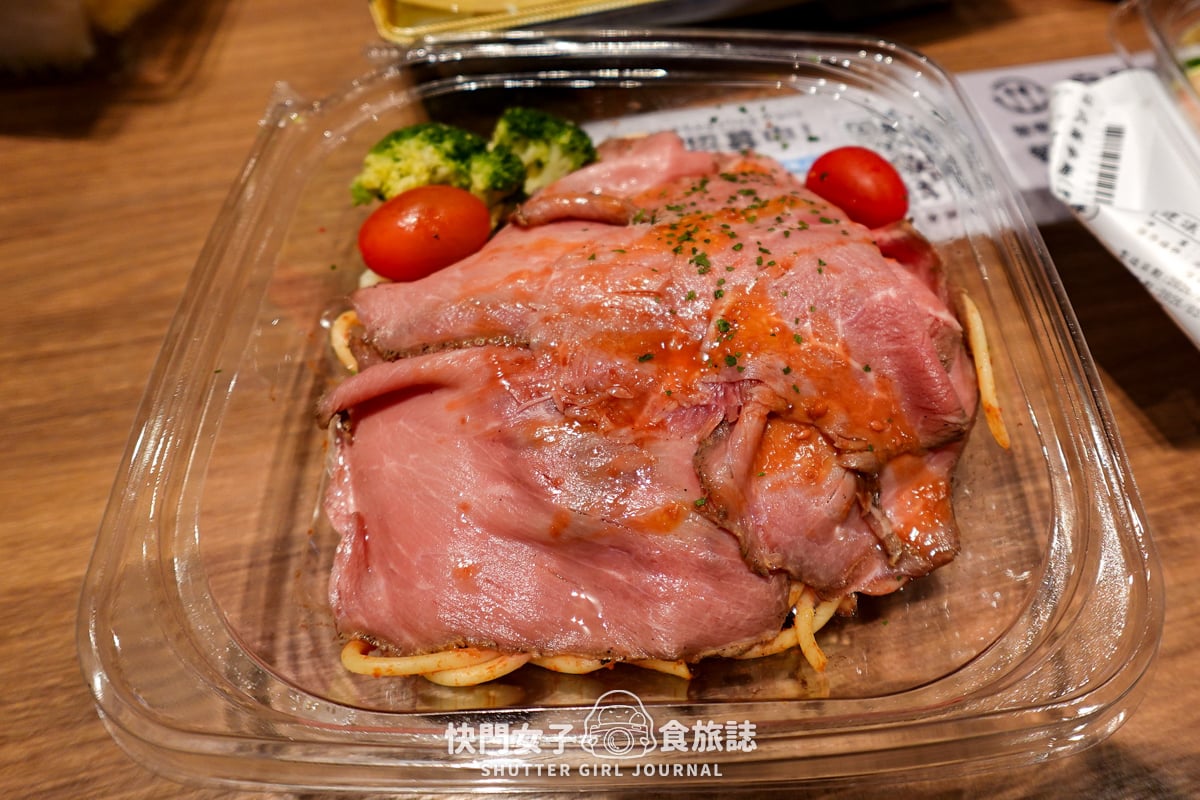 這份義大利麵算是冷盤的義大利麵,有大概4-5片薄的烤牛肉片、2顆小蕃茄、花椰菜,還有蕃茄口味的義大利麵,整體份量算是很足夠的