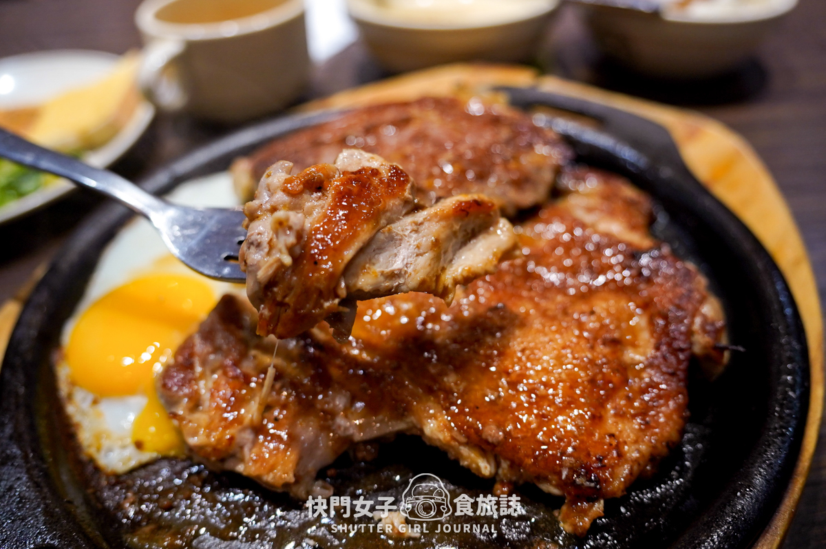 我的餐點送上啦,牛排和雞腿排份量超大的噢!如果我沒有去調鐵板麵的話整份會吃超級超級飽