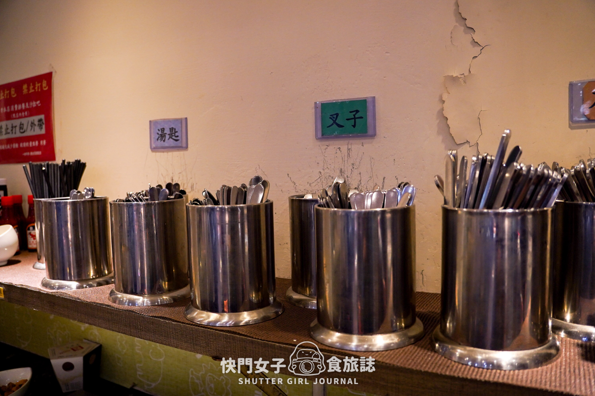 桌面上有衛生紙,餐具刀叉則是在自助吧後台的櫃子上自行拿取