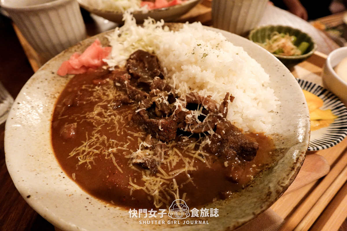 這份是我的牛筋咖喱,飯量滿多的,牛筋份量也不少,旁邊還有附上紅薑,上面再刨一些起司