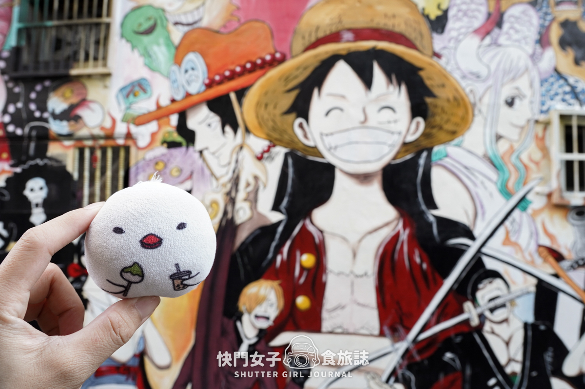 首先看到的是航海王,會讓我們對這面牆非常有興趣除了他是經典的動漫、經典場景以外,是他牆上還有附一頂草帽!