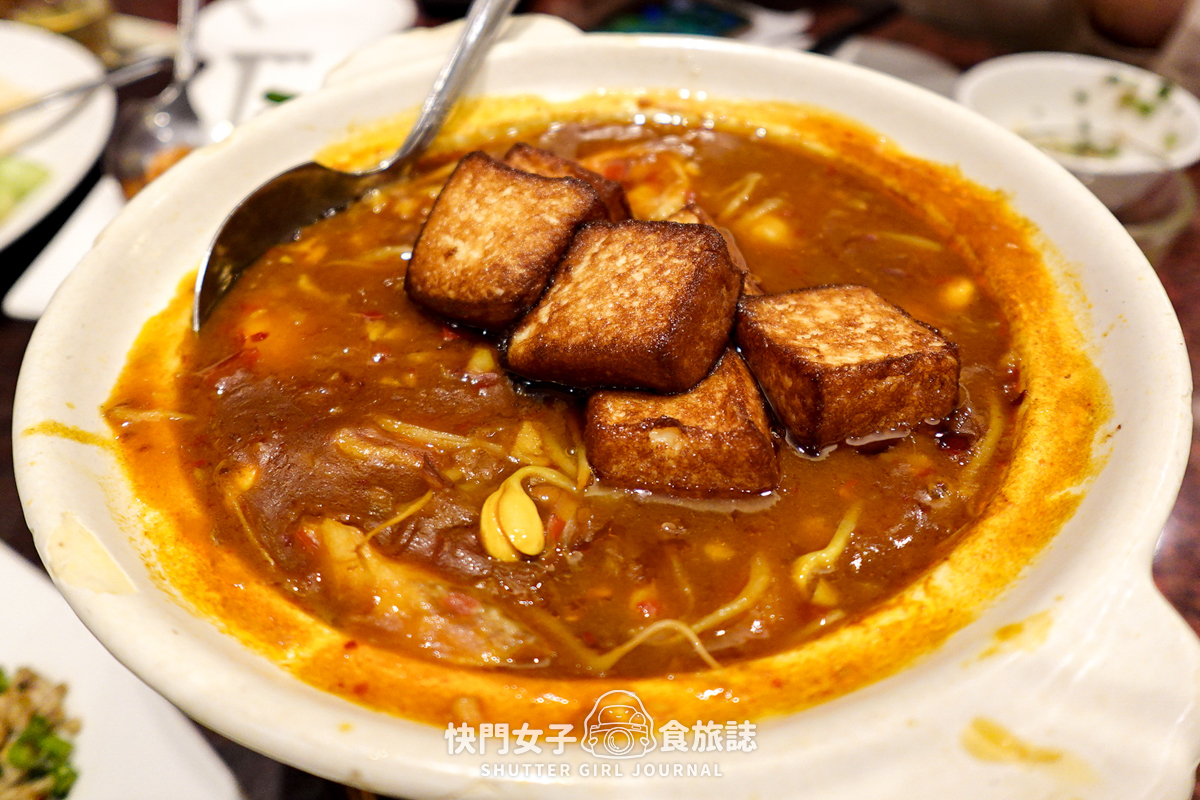 整鍋有咖哩的風味,和我想像的海鮮豆腐煲不太一樣,我以為會是清爽或是勾芡類型