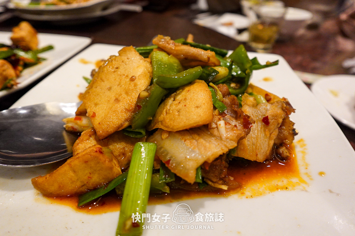 Sauteed sliced pork with dry bean curd and chili