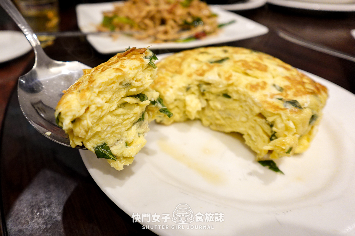 烘蛋很厚,九層塔也平均在蛋的四處,幾乎每一口都可以吃到九層塔