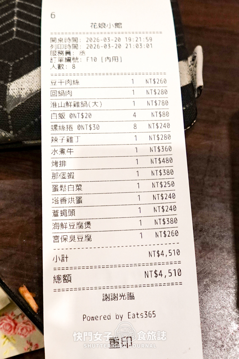 最後貼一下帳單,我們八人用餐,幾乎都是點菜單上的招牌料理