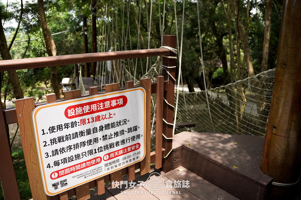 有一些設施的注意事項會標明限制的年齡和一些相關規定,大致上有平衡訓練、障礙訓練、類似獨木橋還有推軌道車,都不是太難、太危險性的設施,很適合大人帶小孩子一起體驗