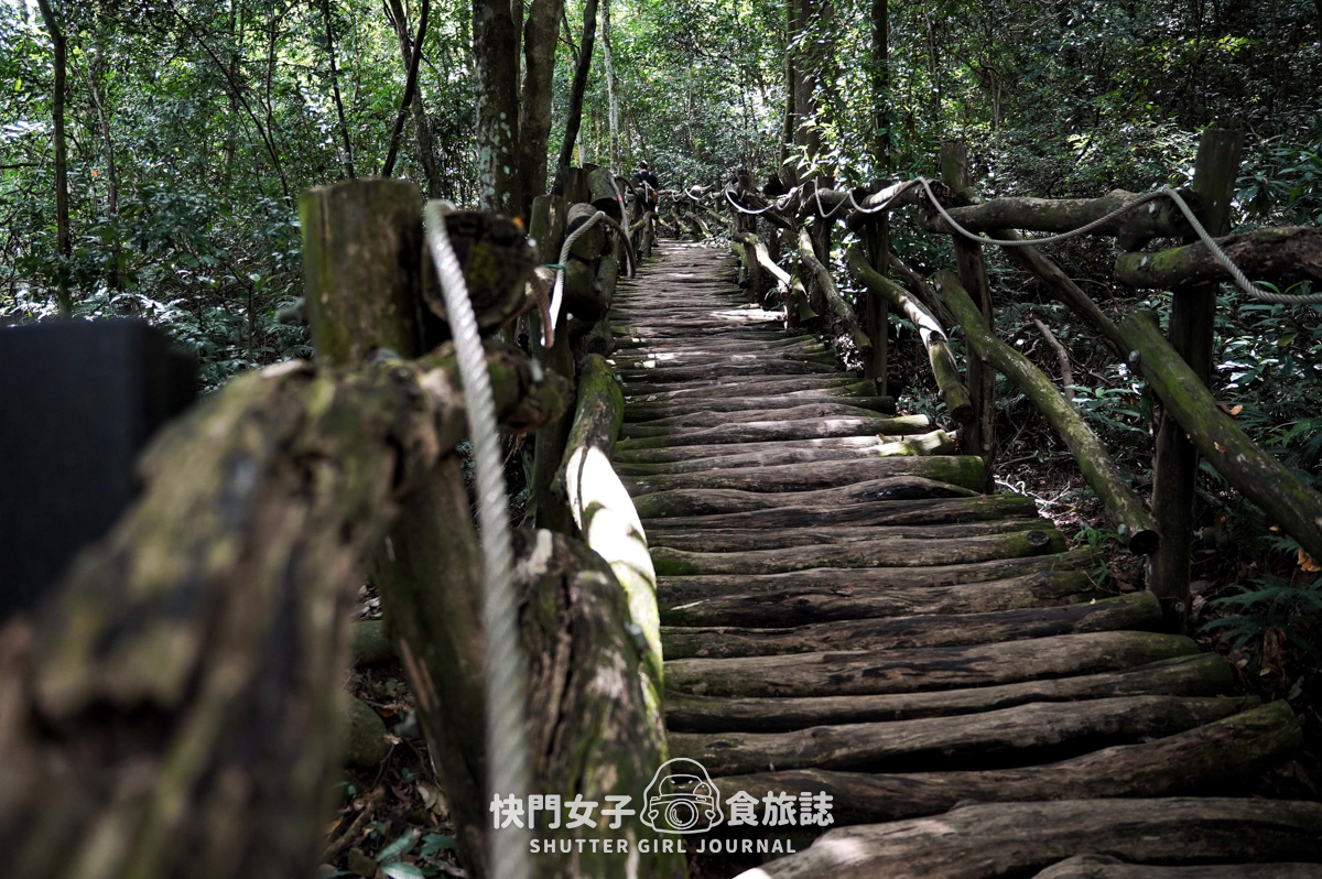 經過了最陡的階梯以後,會有一段較長的平坦圓木道路
